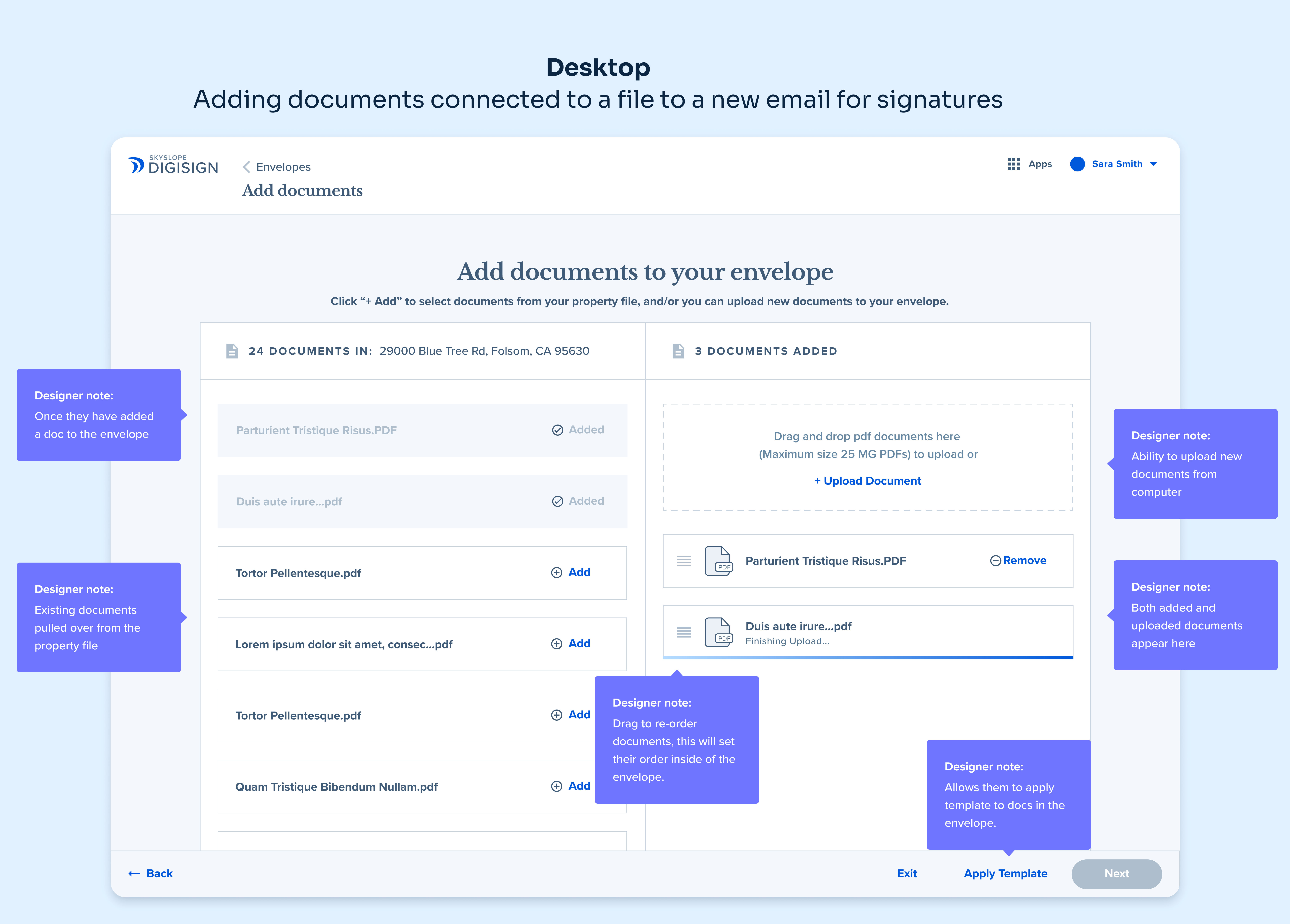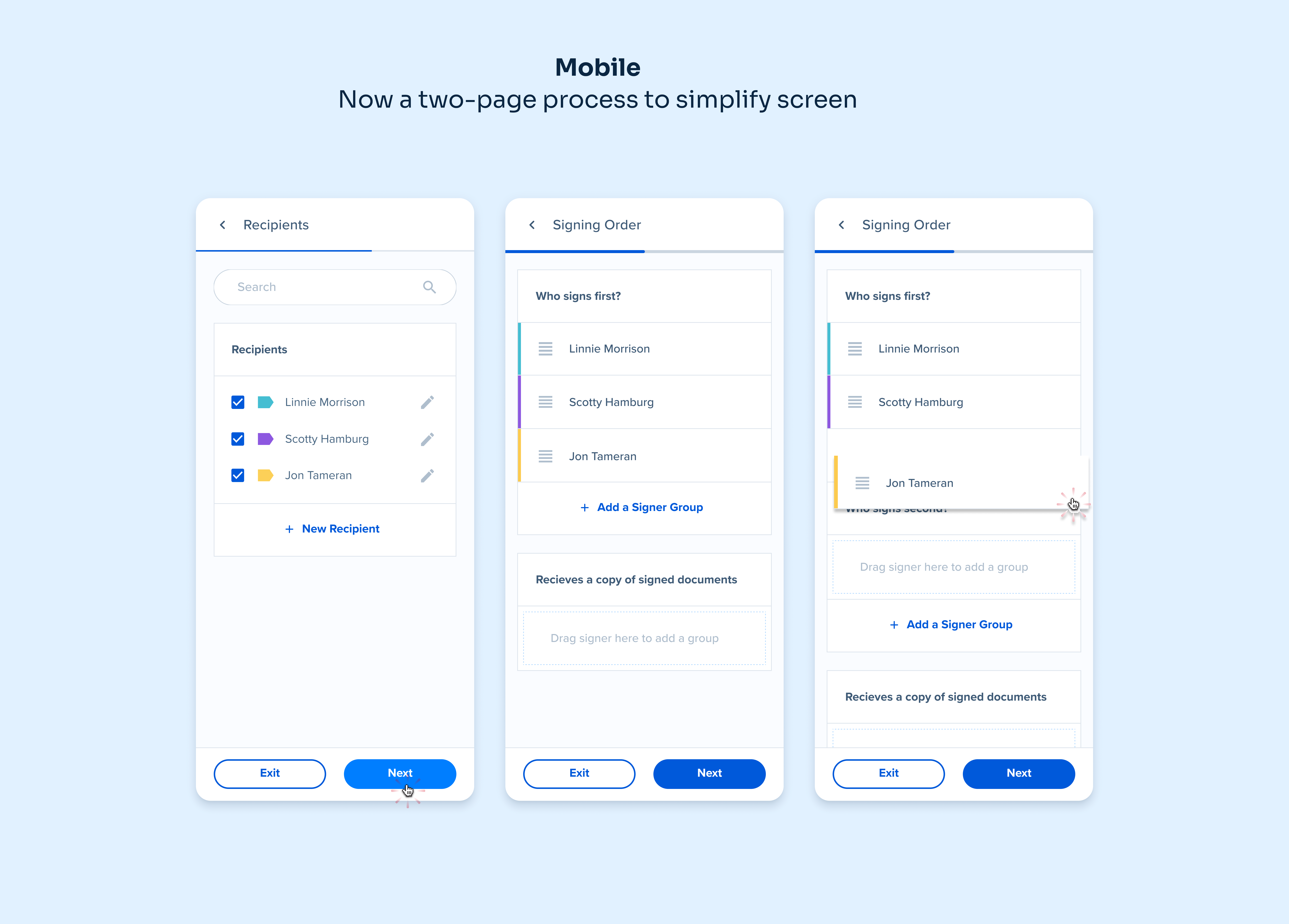 While many of the pages just needed a little restructuring, some of the more complicated pieces of the workflow needed to be simplified for the limited screen space. For example, the document uploads and email recipients pages.