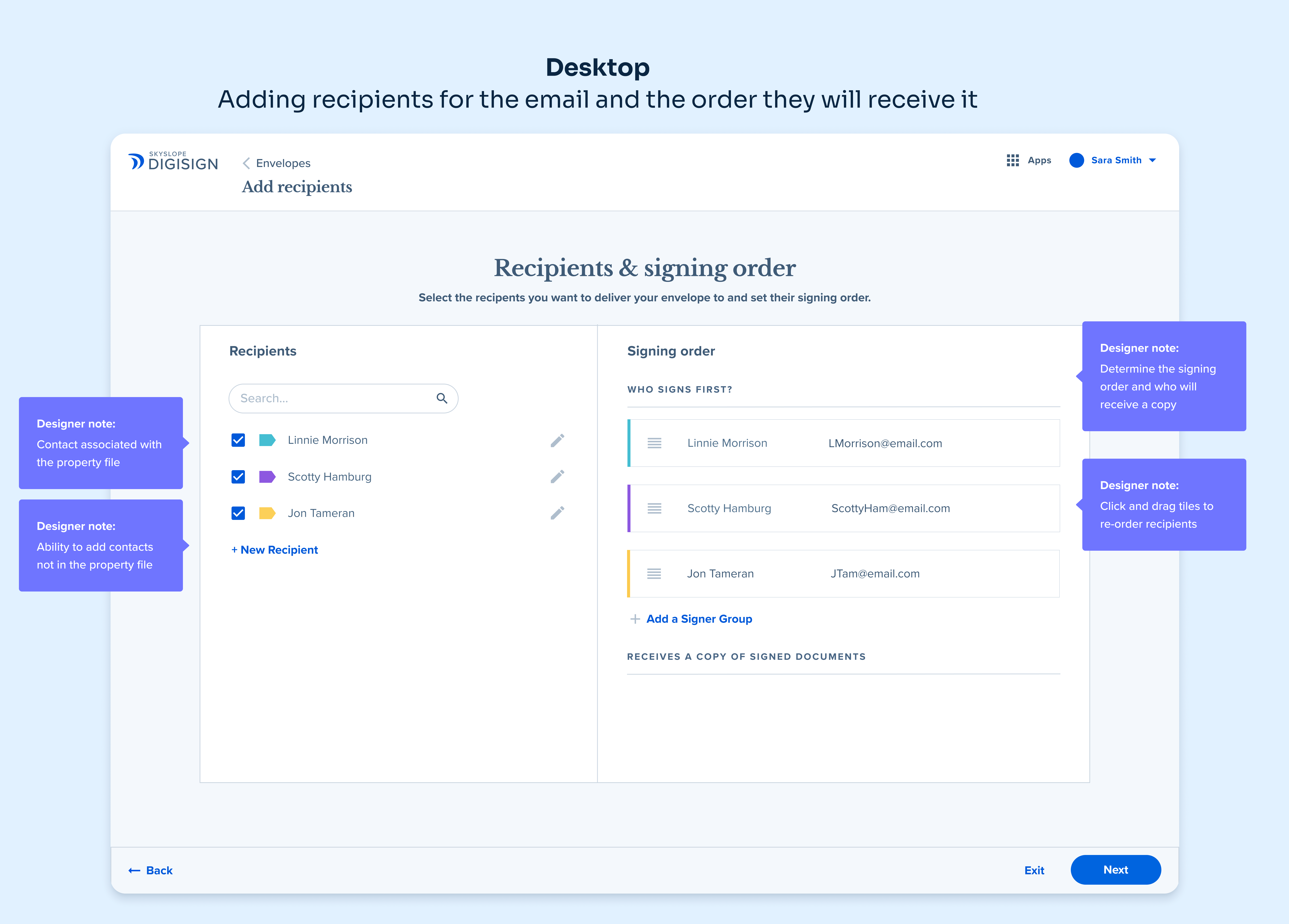 SkySlope DigiSign is a digital signature application that real estate agents can use to fill in forms, drop signature blocks, and send out documents for client signatures.