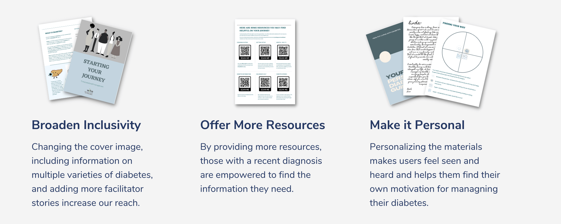 Healthy Living with Diabetes was the client I worked with as part of my MS in Design + Innovation at UW-Madison. While it is not UI work, I keep it in my portfolio because it holds a special place in my heart getting to work with such an at-risk population of kind, open people.