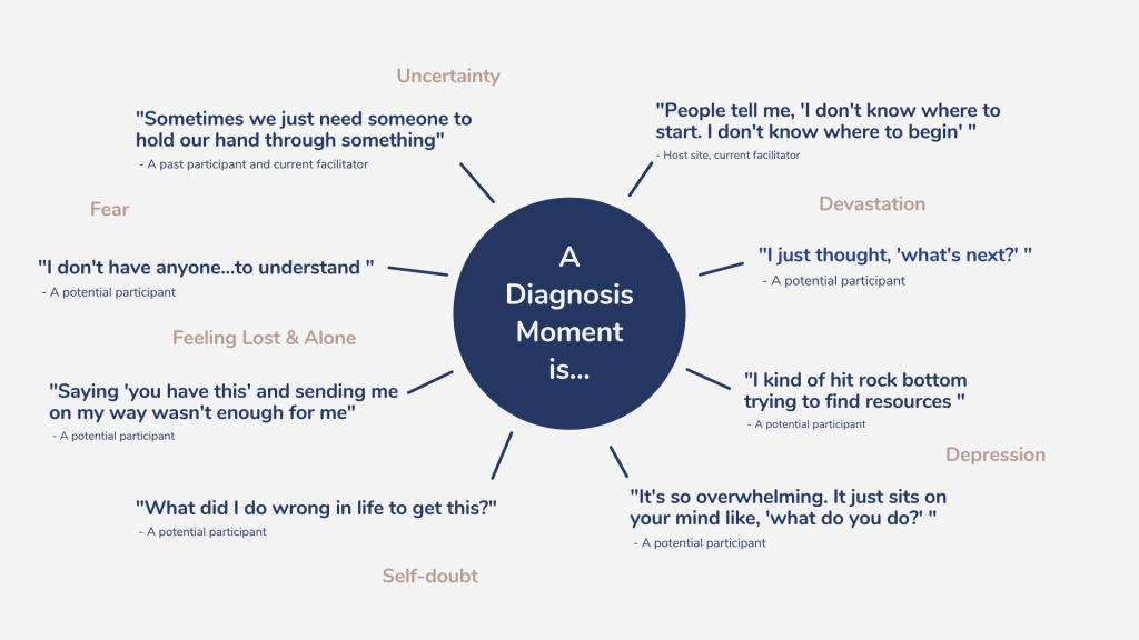To start prototyping our solution, we went back through our interviews to understand the feelings that come up in the current diagnosis experience and what they wished they had gotten out of the experience.